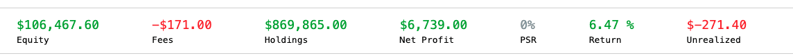 Today’s trades included both short and long positions. The algorithm shorted the market in the morning and later switched to long positions. With a $100K portfolio, the return was 6.5% in just one day. Please see the attached screenshot of the trade opened at 9:30 AM EST.